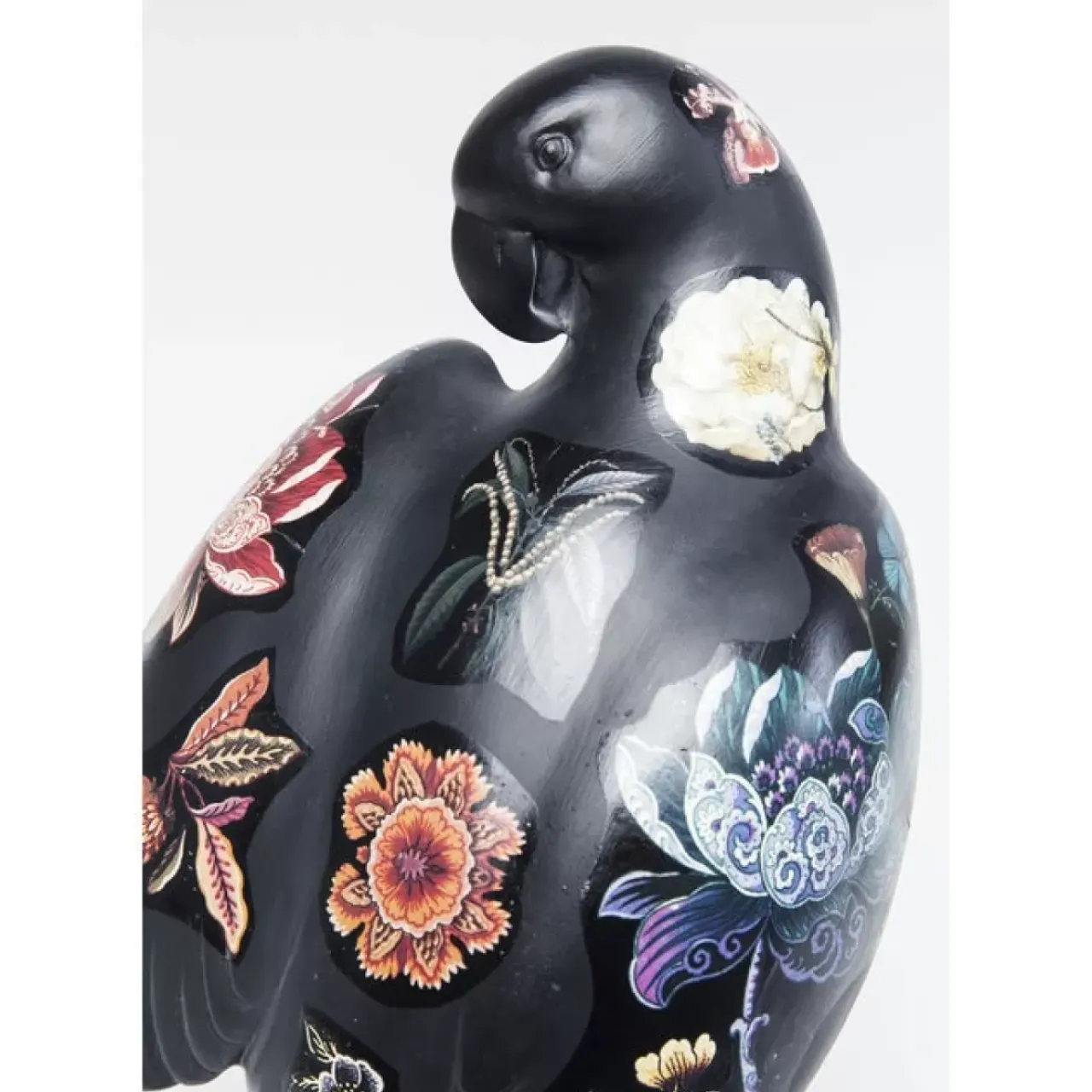 - Schwarze Papageien-Skulptur Mit Blumen-Tattoo