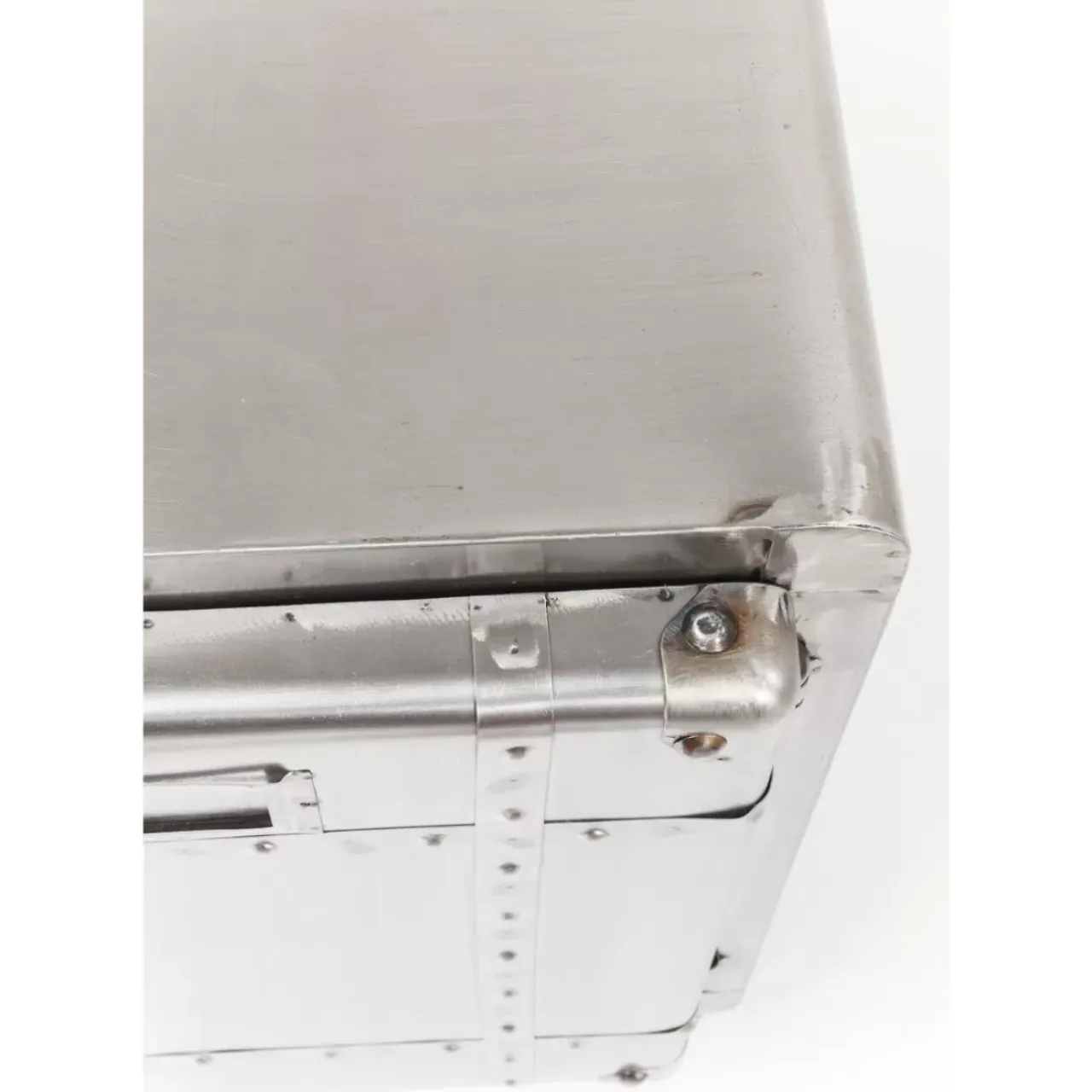 - Rechteckige,Kompakte Kommode Aus Stahl Im Vintage-Look Auf Vier Rollen Mit Schweisnahten Und Zwei Grosen Ablageflachen Hinter Den Beiden Turen