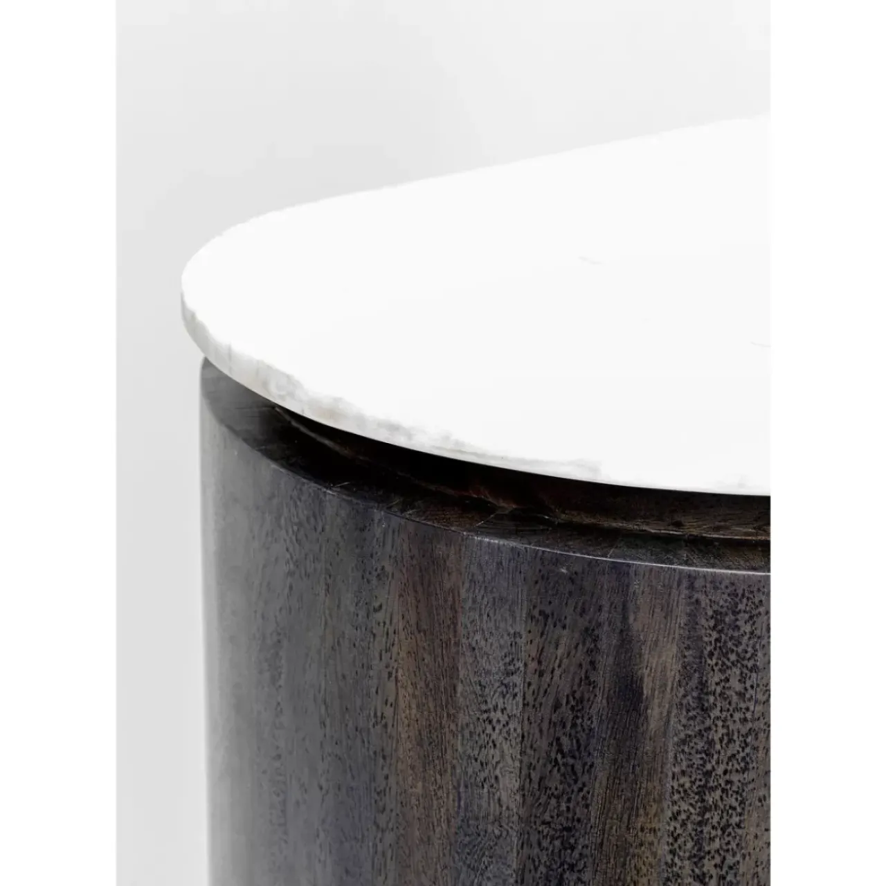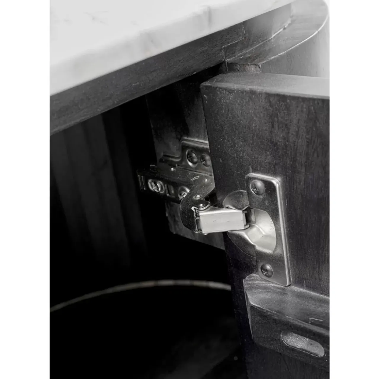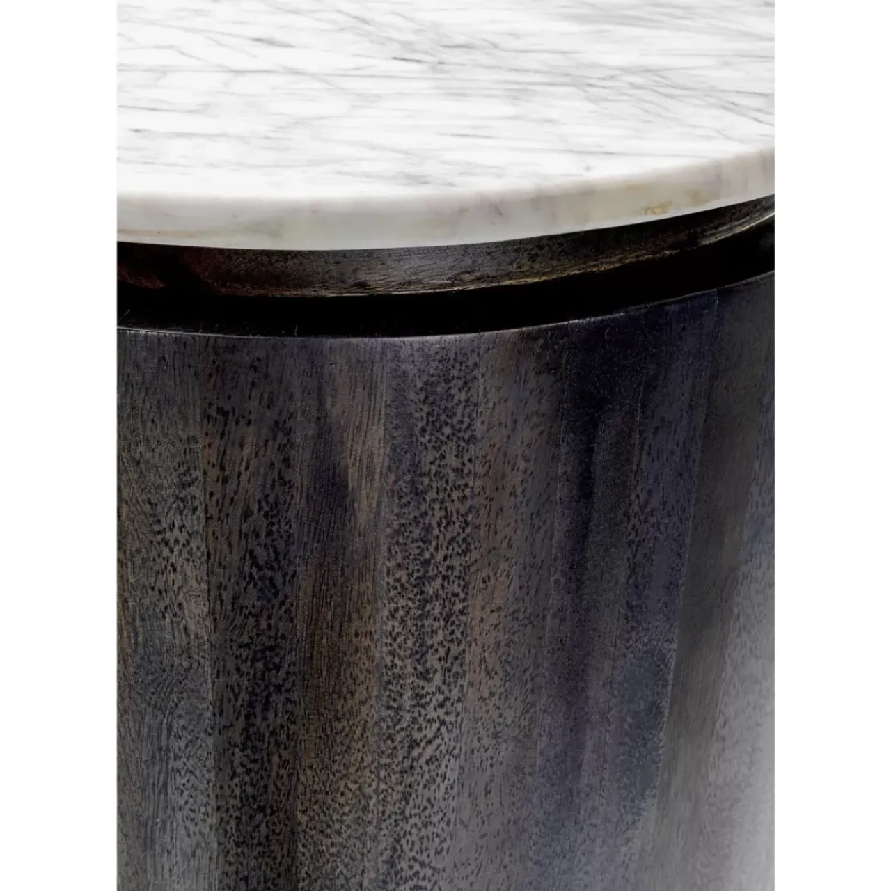- Spielt Mit Oberflachen-Kontrasten: Eleganter Hochschrank Mit Heller Marmorplatte,Dunkelgrauem Massivholz-Korpus Auf Filigranem Stahlgestell In Schwarz