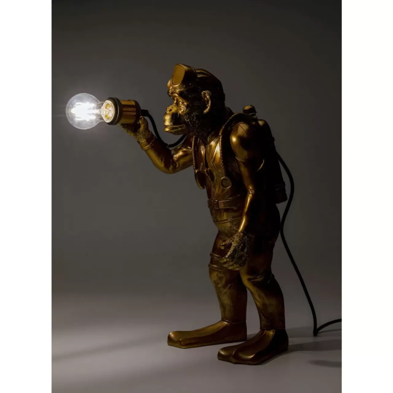 - Tischleuchte In Gold Aus Stabilem Kunstharz Mit Einzigartiger Designidee: Ein Affchen Im Taucheranzug Bringt Licht Ins Dunkel