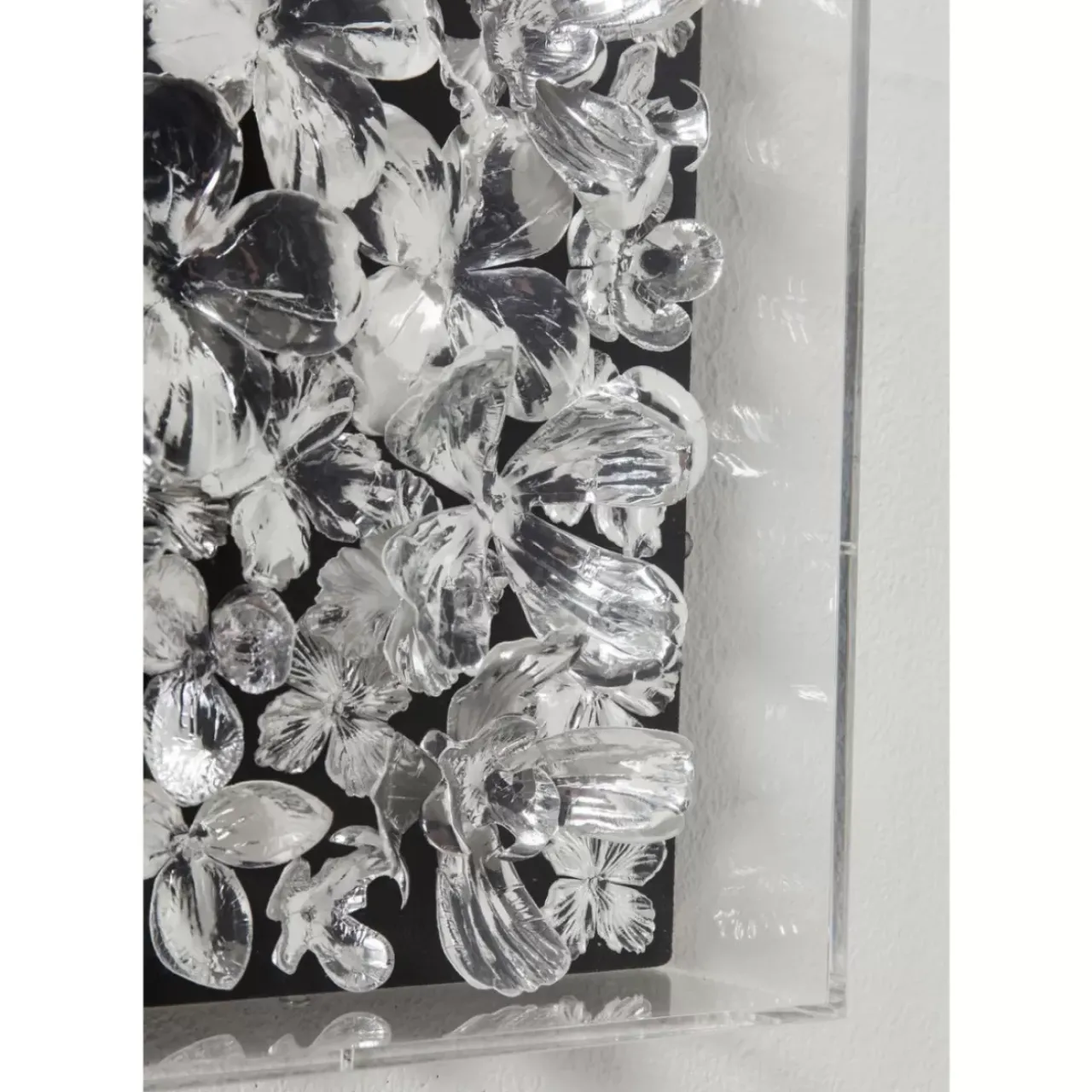 - Ein Dreidimensionales Kunstwerk Fur Blumenfans: Dieser Plexiglasrahmen Mit Silbernen Bluten Ist Ein Groses Statement-Bild Fur Einen Raum