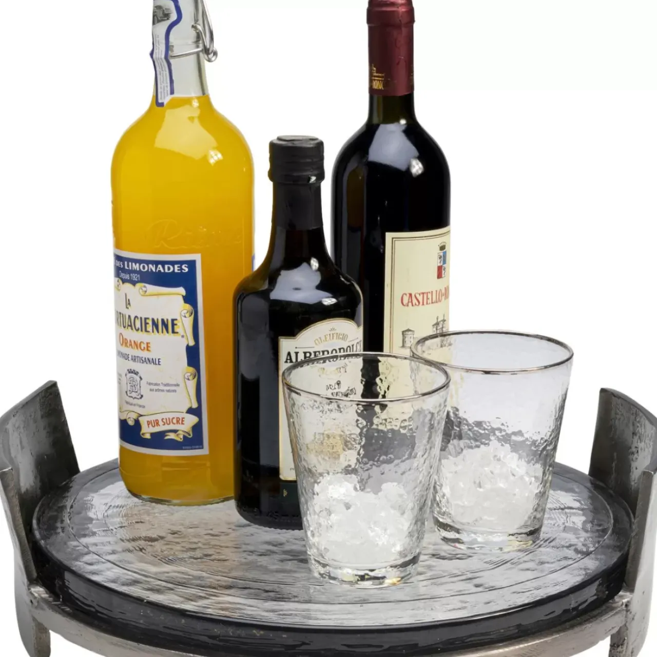 - Strukturiertes,Gegossenes Glas Und Metall Im Industrie-Stil Verleihen Dem Tablett Seinen Charakter