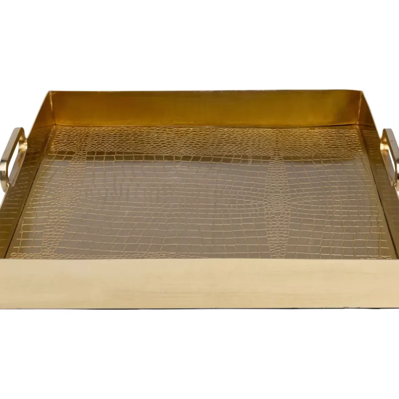 - Goldenes Tablett Mit Griffen Aus Metall 8X42X41 Cm (H/B/T)