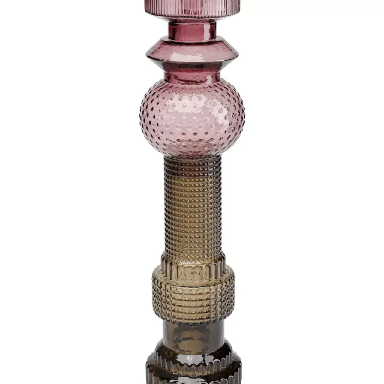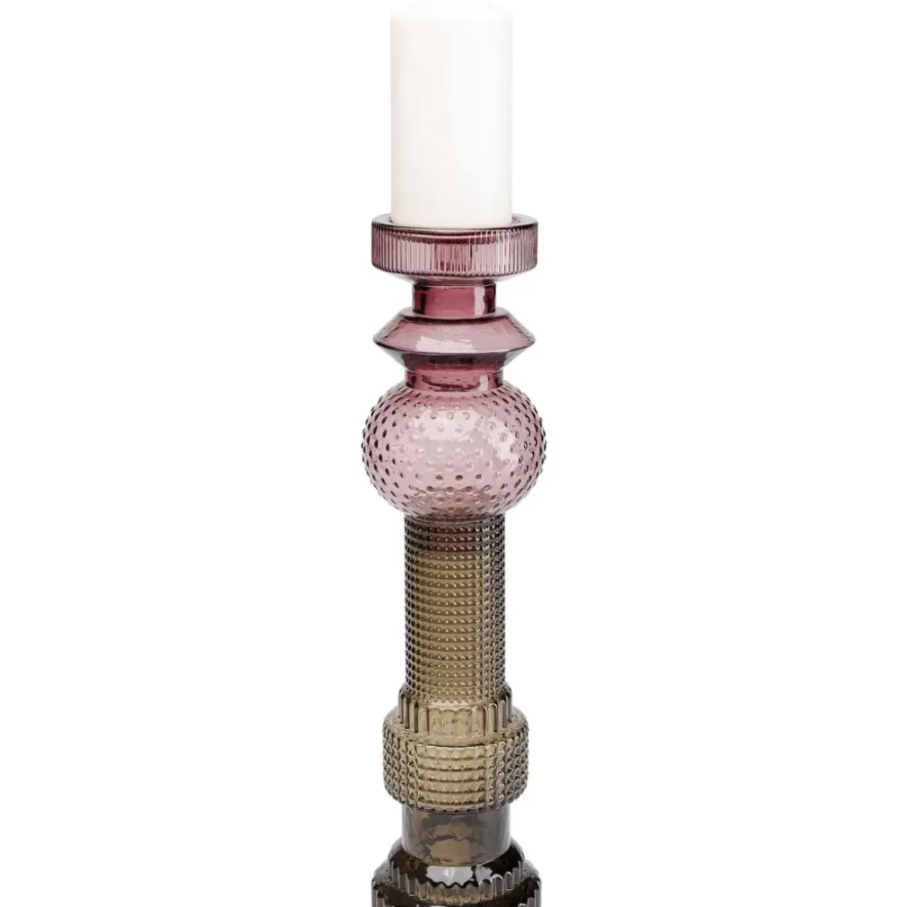- Hoher Kerzenhalter Aus Unterschiedlich Farbigem Und Gepragtem Glas In Grun-Grau Und Lila-Rose Fur Stumpenkerzen