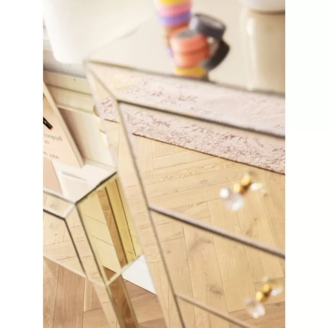 - Ein Gemusterter Teppich Vor Dieser Spiegelkommode Schafft Uberraschende Effekte-Ausprobieren!