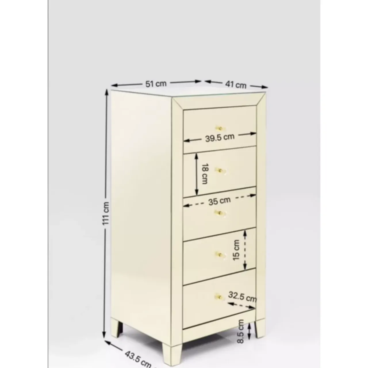 Verspiegelte Hochkommode,Die Durch Ihre Praktischen Mase Und Ihren Glam-Faktor Punktet Tief,Hoch Und Mit Funf Schubladen…