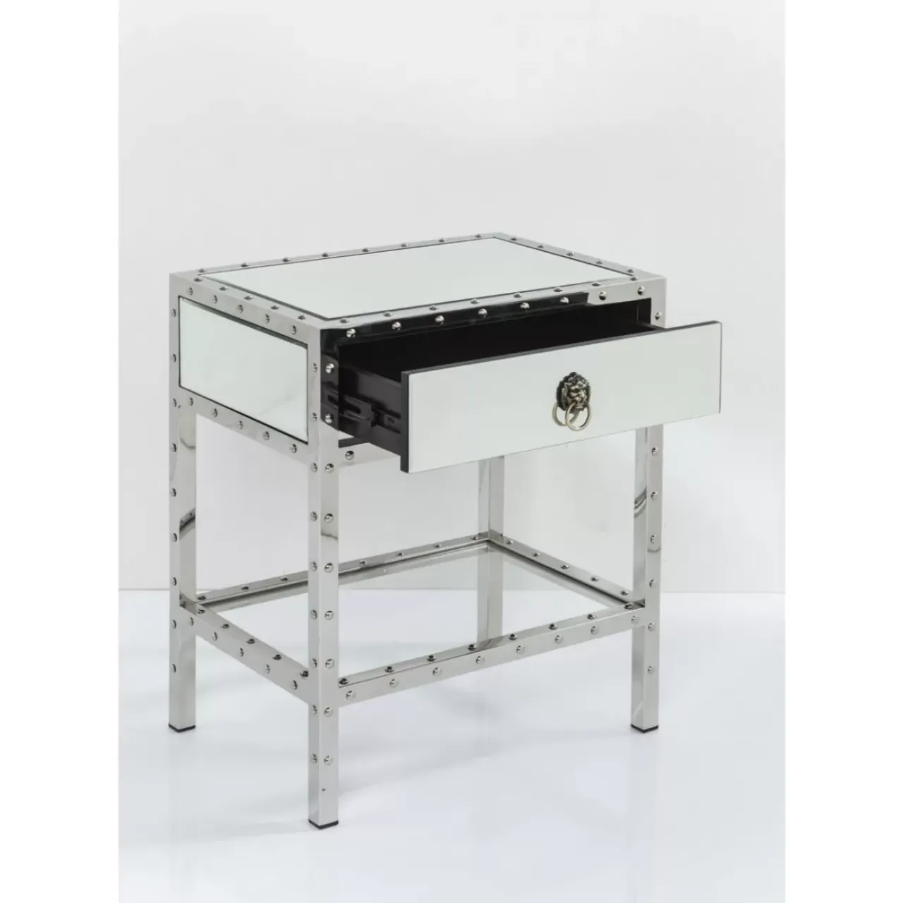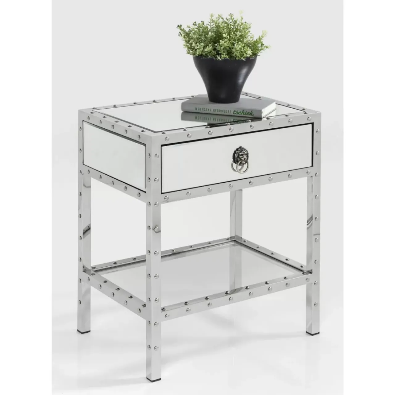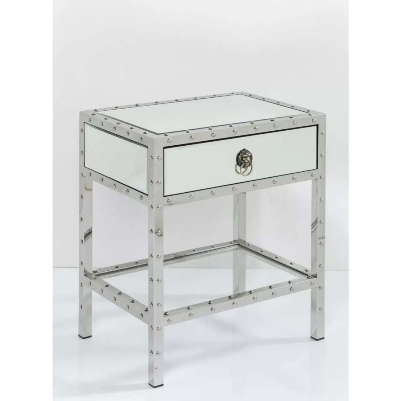 - Kleine Kommode Mit Spiegelglas-Verkleidung Und Facettenschliff,Dekorativen Nieten,Edelstahl-Gestell Und Stauraum