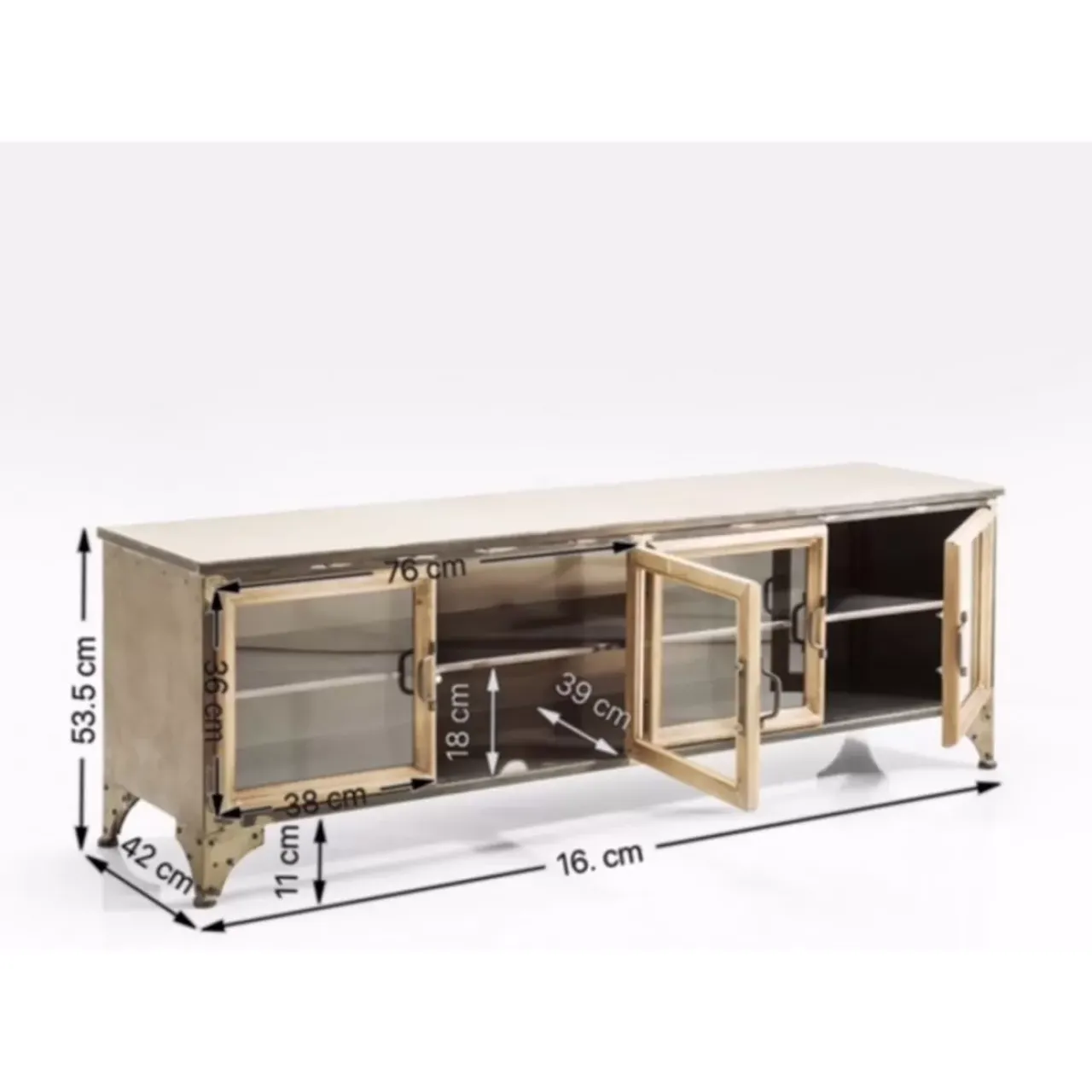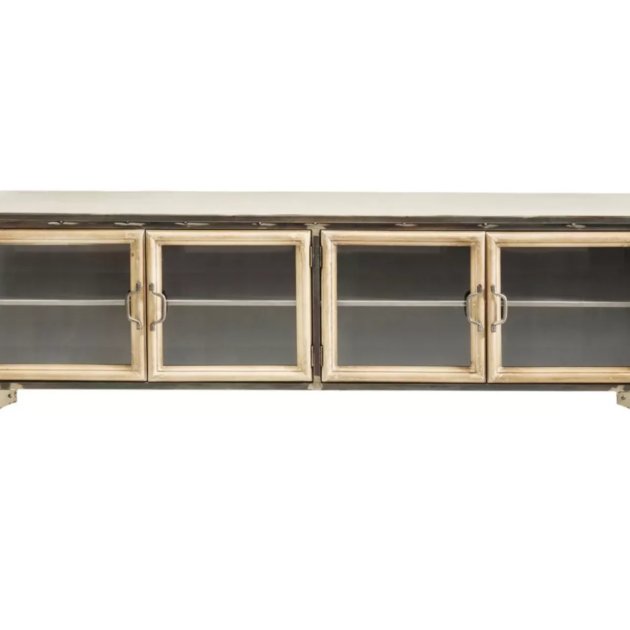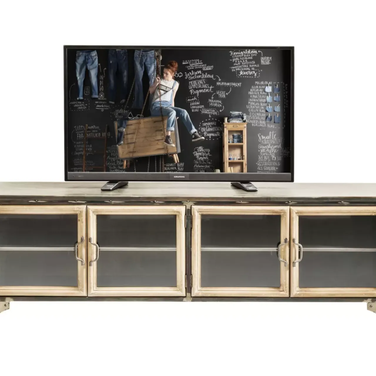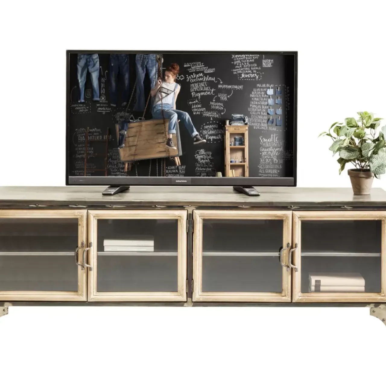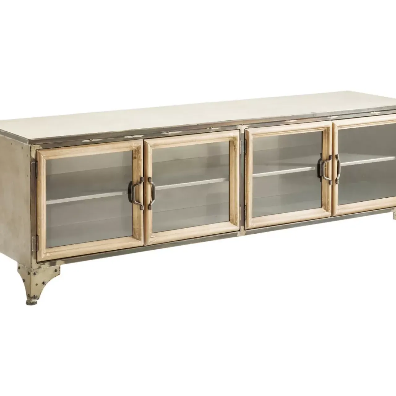 - Flaches Tv-Board Im Markanten Industrial Design Mit Vier Glasturen Und Fest Montierten Boden