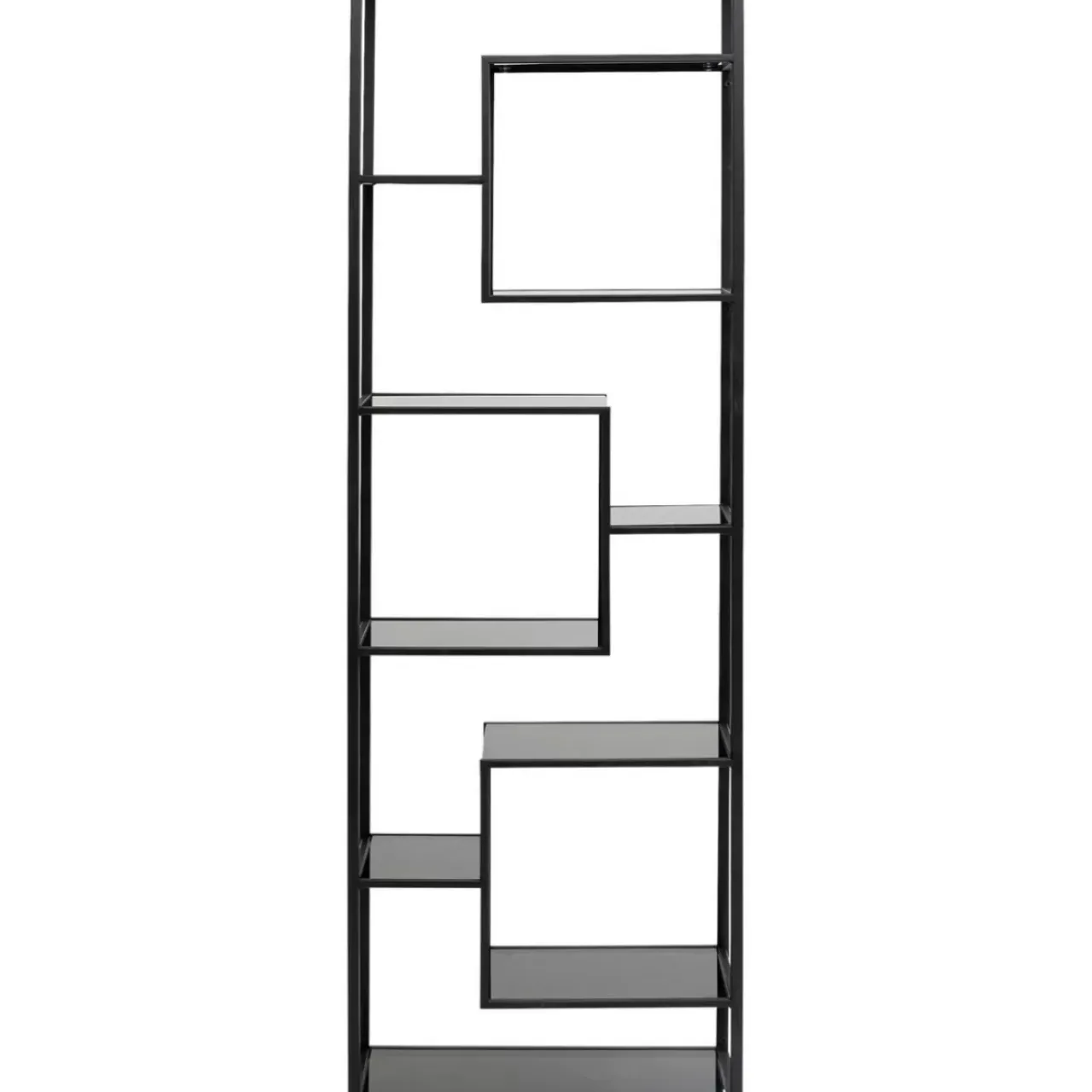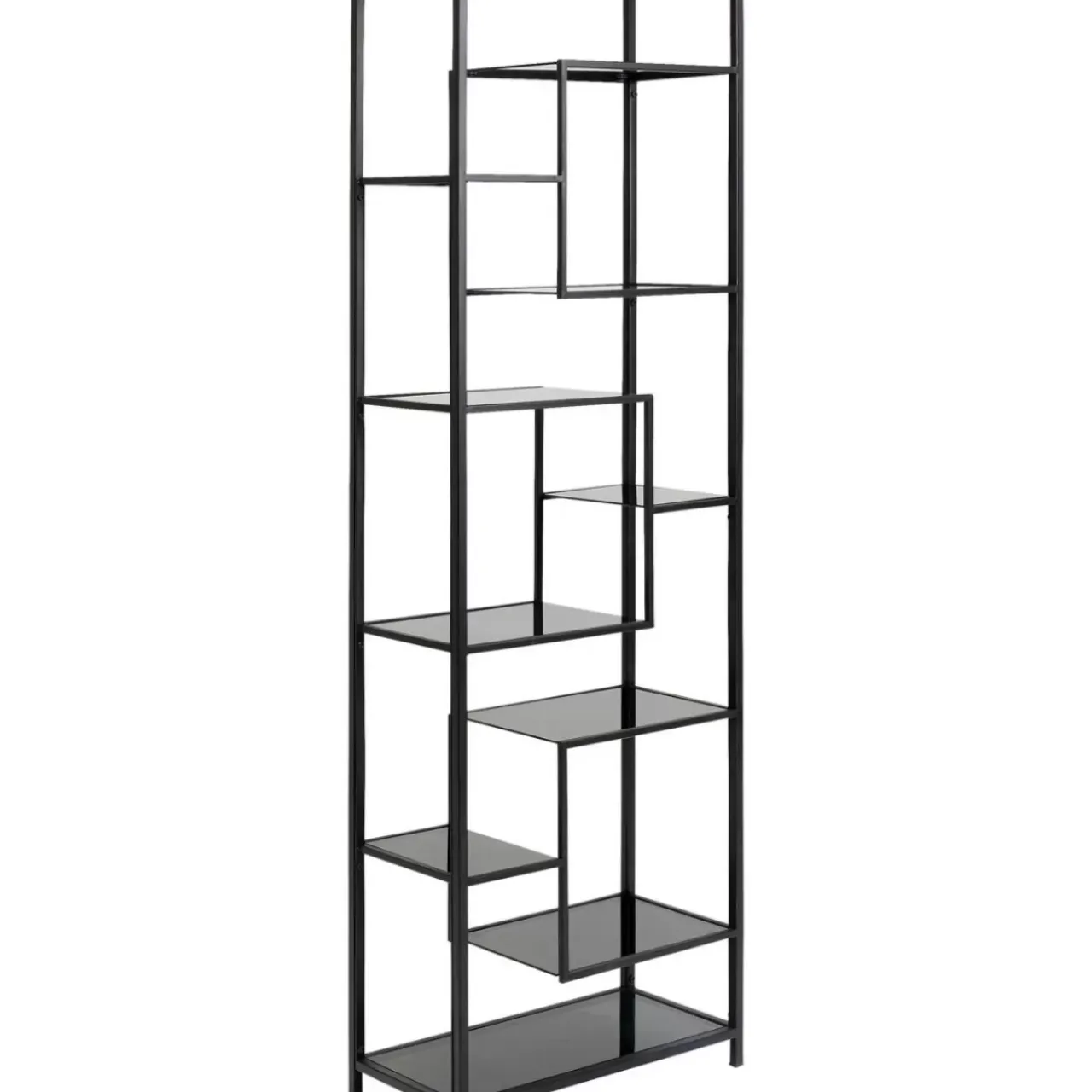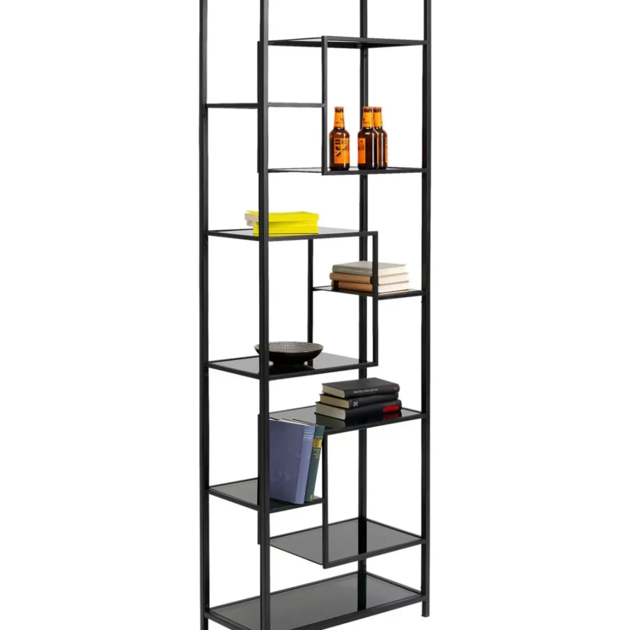 - Grafisches Design In Der Power-Farbe Schwarz: Hohes Bucherregal Aus Stahl Mit Glasboden