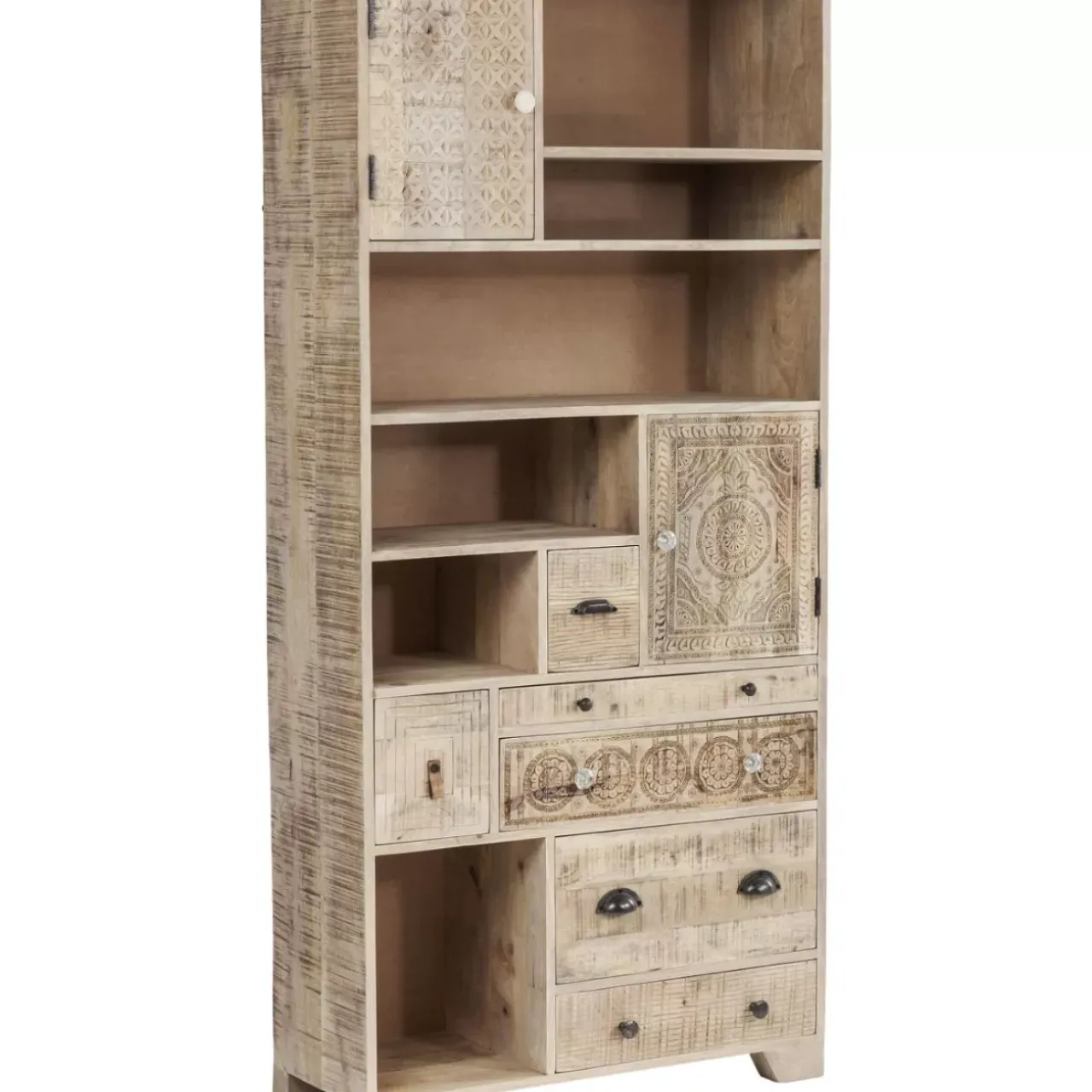 - Hohes Standregal Aus Mango-Massivholz Mit Dekorativen,Handgeschnitzten Ornamenten