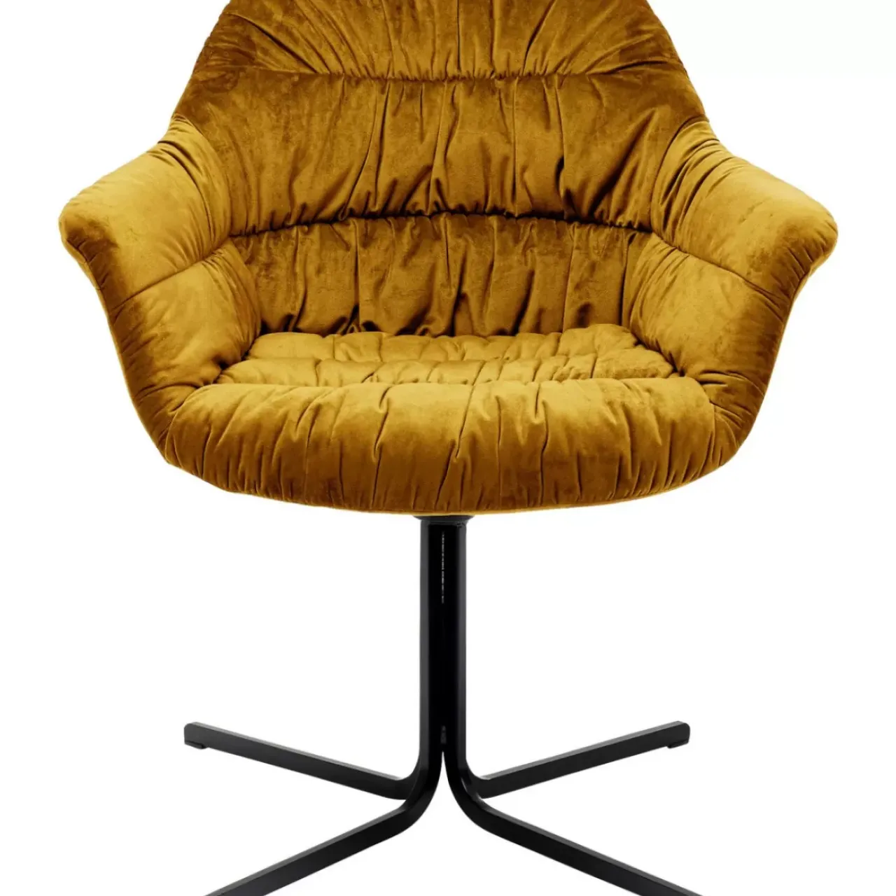 - Voluminos Gepolsterter Drehstuhl Mit Armlehnen,Einem Samtigen Bezug In Warmem Gelb Und Stabilem,Schwarzen Sternfus Aus Stahl