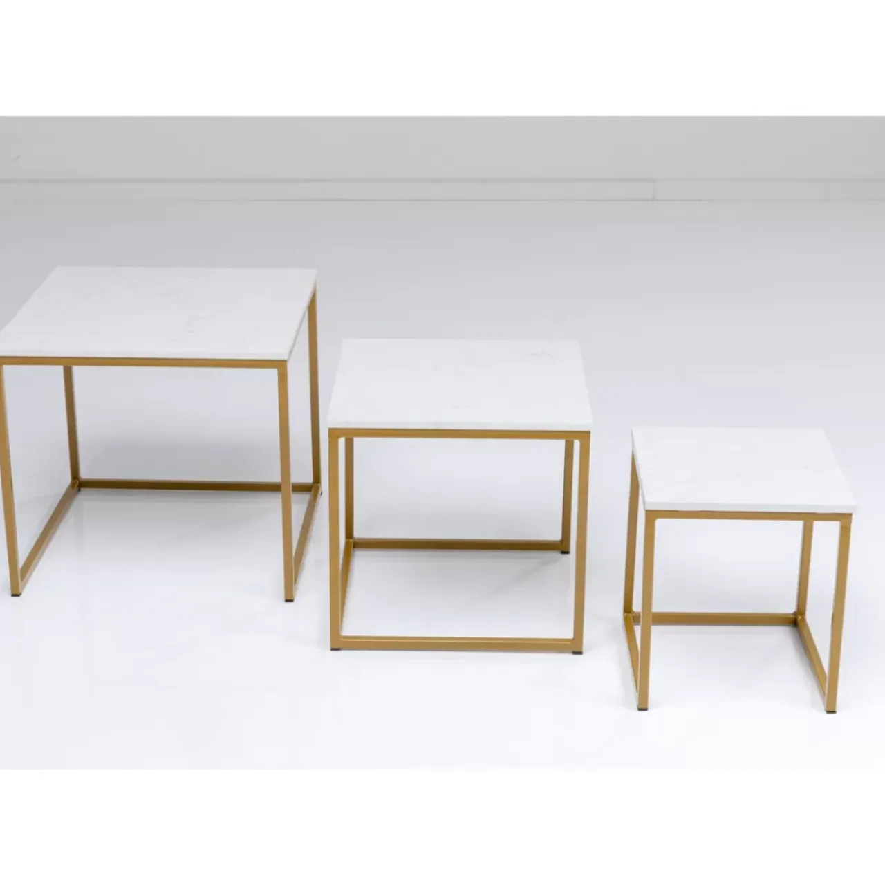 - Gradlinige Klassik Mit Luxus Flair,3Er-Set Wohnzimmertische In Weiser Marmor-Optik