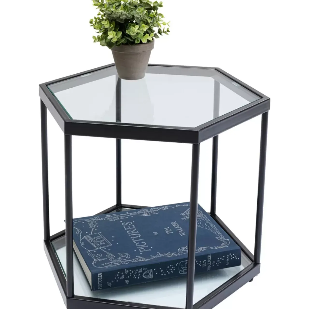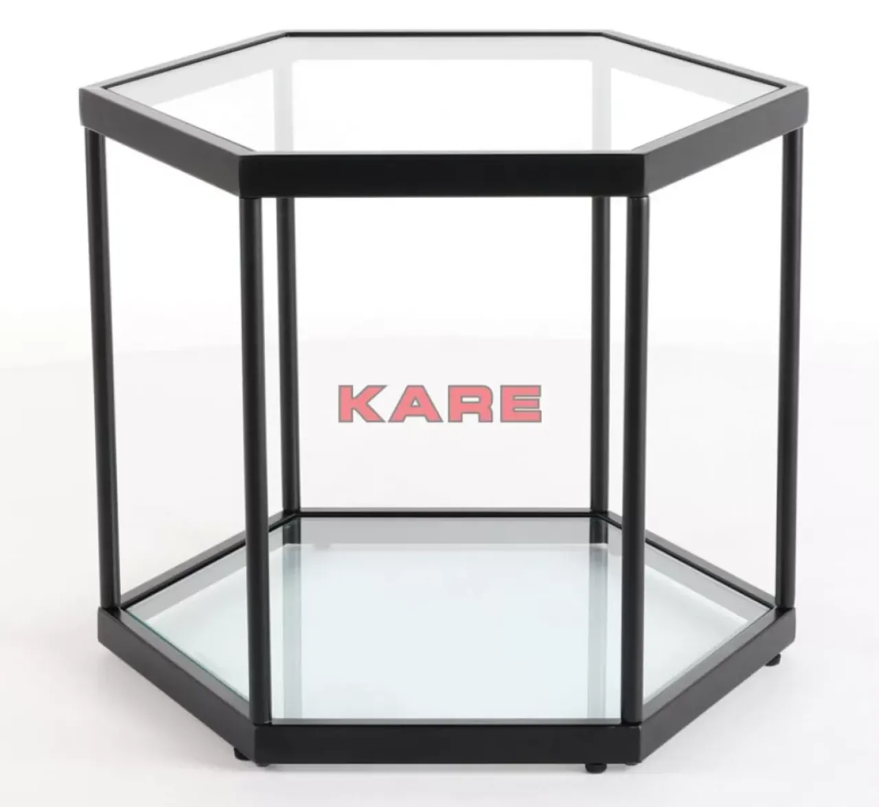 - Glamour Mit Modernem Touch: Sechseckiger Glas-Couchtisch Mit Schwarzem Stahlgestell Und Zwei Ablageflachen