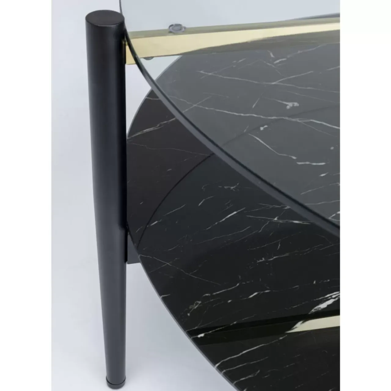 Eleganter,Runder Beistelltisch Aus Glas Und Stahl Mit Akzenten In Schwarz Und Messing Exklusiv Fur Kare Entworfen Vom Re…