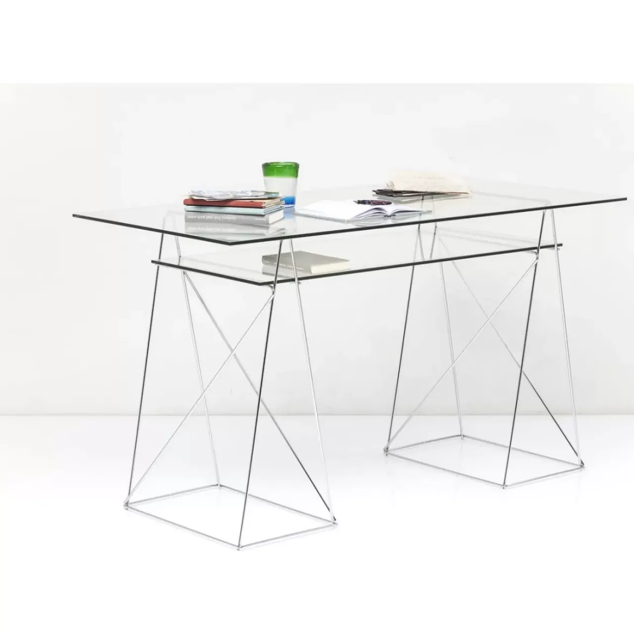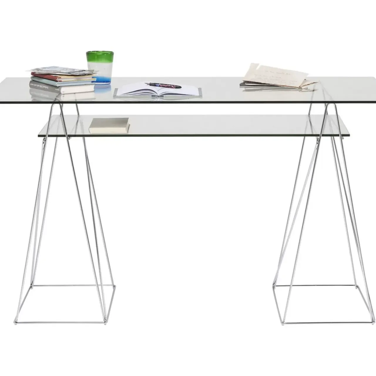 - Eyecatcher Furs Home-Office: Glas-Schreibtisch Mit Filigranem,Verchromtem Gestell