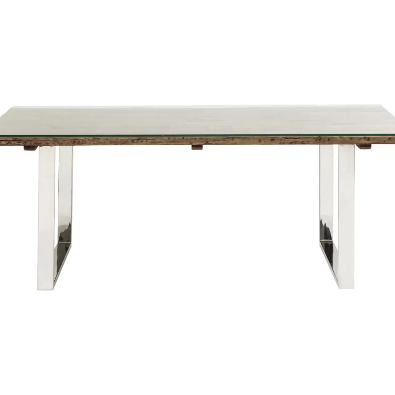- Rechteckiger,Rustikaler Esstisch Aus Recyceltem Massivholz Mit Edelstahl-Kufen Und Glasplatte Fur 4-6 Personen